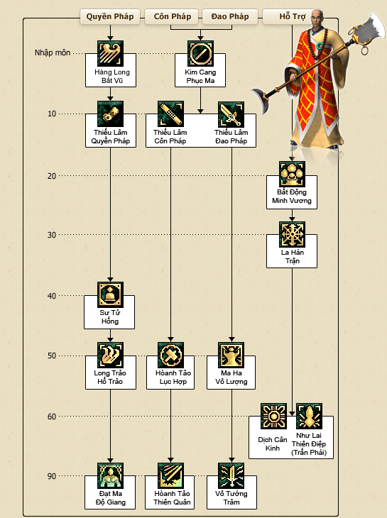 Một số chiêu thức của Thiếu Lâm: Kim Cang Phục Ma, Thiếu Lâm Côn pháp, Hàng Long Bất Vũ, Sư Tử Hống, Hoành Tảo Lục Hợp.